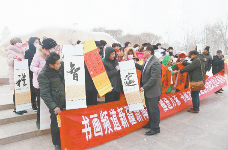 据了解,七师文联自成立以来,每年都积极组织书法家在春节来临之际,深入企业、社区,开展送春联服务活动,弘扬传统文化,寄托美好愿景,受到广大干群的一致好评。