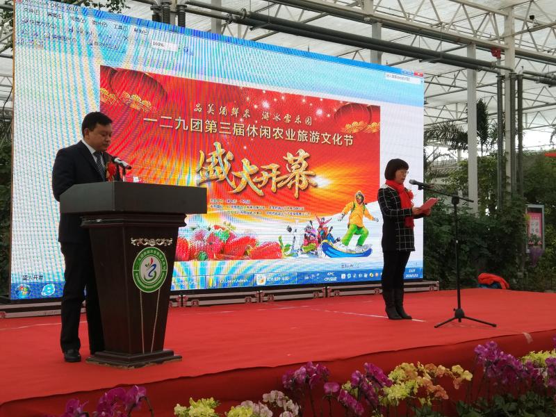 为大力推进129团休闲农业旅游文化融合发展,打造特色旅游品牌,展现五五美酒,南国风光,冰雪乐园的美丽场景。129团举办了“第三届休闲农业旅游文化节”活动,商务局、旅游局等部门参加了此次活动开幕式。大家见证了玖恒生态农业网站的启动仪式,共同祝愿129团第三届休闲农业旅游文化节取得圆满成功。